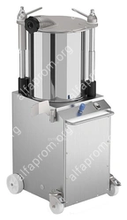 Вертикальный колбасный шприц: предназначен для более крупных предприятий, где важна высокая производительность. Вертикальное расположение цилиндра облегчает загрузку фарша и обеспечивает равномерную подачу.