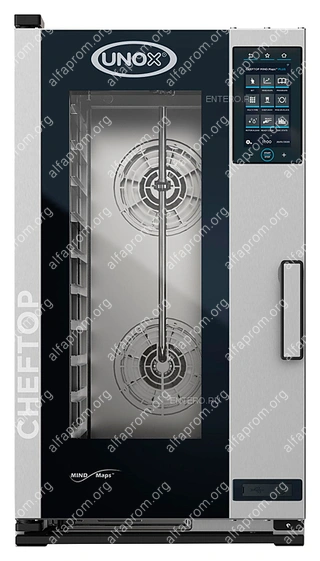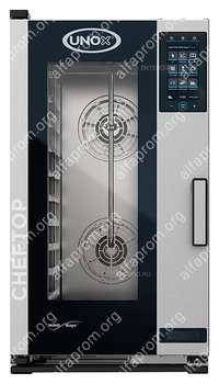 Пароконвектомат UNOX XECC-1013-EPRM серии COMPACT CHEFTOP MIND.Maps™ PLUS предназначен для приготовления различных блюд, выпечки хлебобулочных и кондитерских изделий на предприятиях общественного питания и торговли, в пекарнях и кондитерских. Модель оснащена встроенной в дверь светодиодной LED-подсветкой и C-образными с зубчатыми нишами направляющими. Внутреннее открывающееся стекло облегчает чистку и обеспечивает максимальную гигиену. Камера с закругленными углами выполнена из нержавеющей стали AISI 304, направляющие - из профилированной стали, дверной замок - из высокопрочного самосмазывающегося технополимера, внутренний штифт дверной ручки - из углеродного волокна.