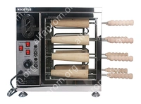 Настольная печь для трдельников Kocateq DHKurtos используется на предприятиях общественного питания и торговли, в пекарнях и кондитерских для выпечки до 8 венгерских калачей. Модель оснащена панелью управления, термостатом для автоматического поддержания температуры. Корпус выполнен из нержавеющей стали AISI 201, ножки - из металла, с пятками - из пластика.