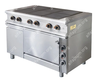 Электрическая плита ITERMA ПКЭ-6КВ-1200/850/860-54 предназначена для приготовления различных блюд в наплитной посуде на предприятиях общественного питания и торговли. Модель оснащена боковым шкафом для посуды, а также жарочным шкафом с двумя уровнями установки противней и ножками, регулирующимися по высоте. Корпус и жарочный шкаф выполнены из нержавеющей стали.