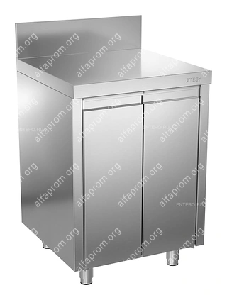 Производственный стол ATESY СТ-С-1.150-700.600-02-Р-2П серии Стандарт используется на предприятиях общественного питания и торговли для разделывания и обработки пищевых продуктов, а также в качестве вспомогательной поверхности для кухонного оборудования. Модель оснащена 2 распашными дверцами и 2 переставными полками. Изделие выполнено из легированной стали, столешница дополнительно укреплена листом ламинированной древесностружечной плиты с внутренней стороны.
